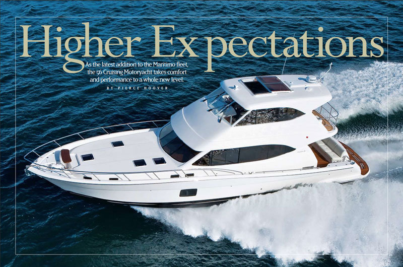 The Maritimo line might have few peers, but it does have siblings. During the recent Miami International Boat Show, I had the opportunity to get acquainted with the newest member of the family, the 56 Cruising Motoryacht, and also to gauge it directly against the company’s popular 52- and 60-foot models. With all three boats sitting transom-to-transom, it was easy to see the subtle but significant design updates incorporated into the 56.